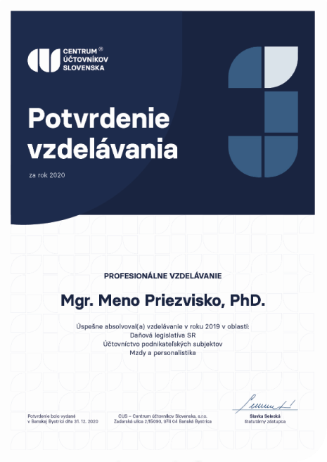 “Konečne mám istotu, že veci robím správne. Nebojím sa vysvetliť šéfovi, čo potrebujeme urobiť, aby sme dodržali literu zákona a pritom využili všetky možnosti a výhody. Pomoc lektorov s konkrétnymi problémami a nasledujúce poradenstvo sú neoceniteľnou výhodou.”
